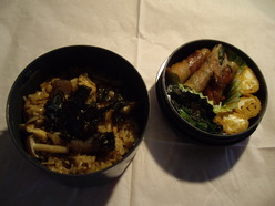 鳥とまいたけの炊き込みご飯とミックスフライ